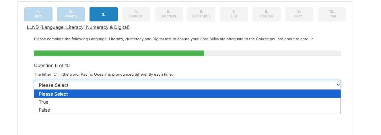 A new testing framework has been built into PowerPro’s Web Plugin this offers our clients the ability to attach customised LLND tests to their existing online enrolment forms.